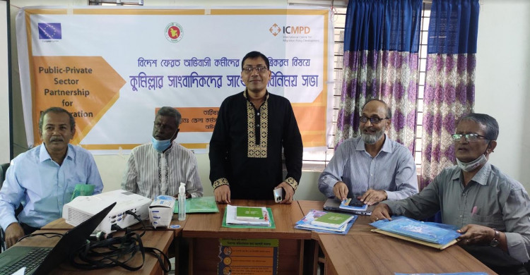 অভিবাসী তথ্য কেন্দ্রের কাউন্সিলর মো. ইকবাল হোসেনের সঞ্চালনায় মতবিনিময় সভায় প্রধান অতিথি ছিলেন আইসিএমপিডির ‘পাবলিক-প্রাইভেট সেক্টর প্রার্টনারশিপ ফর রিইন্টিগ্রেশন-ফেইস ২’ বাংলাদেশ কান্ট্রি কো-অর্ডিনেটর মোহাম্মদ ইকরাম হোসেন। জেলার বিদেশ ফেরত অভিবাসী কর্মীদের প্রকৃত চিত্র তুলে ধরেন এবং সরকার গৃহীত পদক্ষেপ সম্পর্কে সাংবাদিকদের অবহিত করেন তিনি।