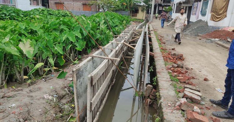 পাংশায় ড্রেন নির্মাণে অনিয়মের অভিযোগে কাজ বন্ধ, দুর্ভোগে এলাকাবাসী