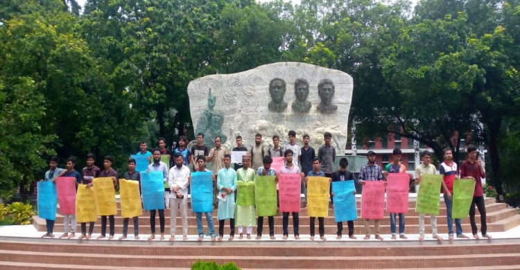 এসময় শিক্ষার্থীরা , 'বাগান ভরা চায়ের পাতা, পেট ভরে না পাই যে ভাতা', 'লতা-পাতা ব্যাঙের ছাতা খাই', রক্ত ঘামের লাভের পাতা হাঙর পেটে যায়', 'বৈষম্য নিপাত যাক, ৩০০ টাকা মজুরি পাক','বাঁচতে হলে দেশের অর্থনীতি, বাড়াতে হবে চা শ্রমিকদের মজুরি', 'দুটি পাতা একটি কুড়ি, মজুরি চাই ১৫ কুড়ি' সহ বিভিন্ন প্রতিবাদী প্ল্যাকার্ড প্রদর্শন করেন।
