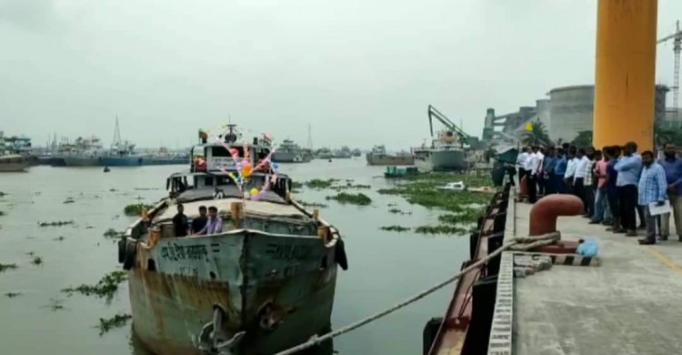 মুন্সিগঞ্জ থেকে গার্মেন্টস পণ্য নিয়ে ভারতের পথে জাহাজ
