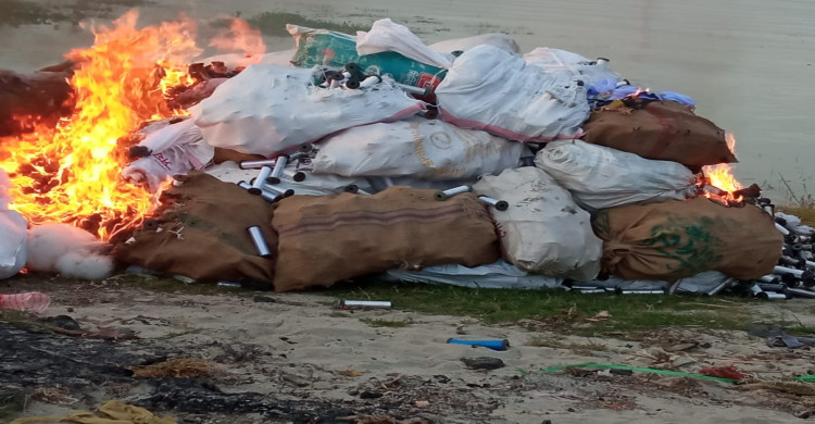 মুন্সীগঞ্জ থানার ৭ মামলার আলামত পুড়িয়ে ধ্বংস