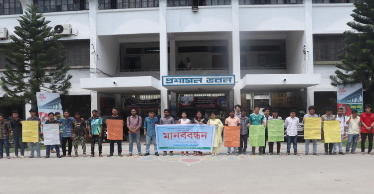 মানববন্ধনে বক্তারা বলেন, ৪৩ বছরেও বিশ্ববিদ্যালয়ের আবাসন সংকট দূর করতে পারেনি প্রশাসন। এর ফলে ঝুঁকি নিয়ে শিক্ষার্থীদের ক্যাম্পাসের বাইরে অবস্থান করতে হচ্ছে। ফলে বারংবার স্থানীয় বখাটে কর্তৃক হেনস্তার শিকার হতে হচ্ছে। এসময় ক্যাম্পাস পার্শ্ববর্তী একটি মেসে 'গোসলের সময় এক ছাত্রীর ভিডিও ধারণের' অভিযোগে আটক আসামির সর্বোচ্চ শাস্তির দাবি জানায় তারা।