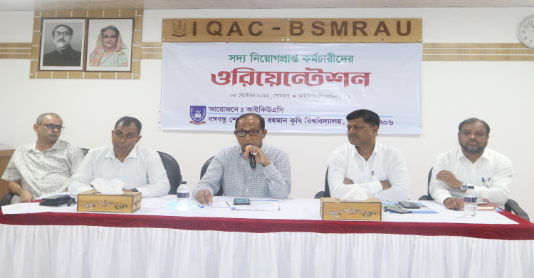 বঙ্গবন্ধু শেখ মুজিবুর রহমান কৃষি বিশ্ববিদ্যালয়ের আইকিউএসি সেমিনার কক্ষে সদ্য নিয়োগপ্রাপ্ত কর্মচারীদের ওরিয়েন্টেশন কর্মশালা অনুষ্ঠিত হয়েছে। সোমবার )৫ সেপ্টেম্বর) ওরিয়েন্টেশন কর্মশালায় বিশ্ববিদ্যালয়ের ভাইস চ্যান্সেলর প্রফেসর ড. মোঃ গিয়াসউদ্দীন মিয়া প্রধান অতিথি হিসেবে উপস্থিত ছিলেন।