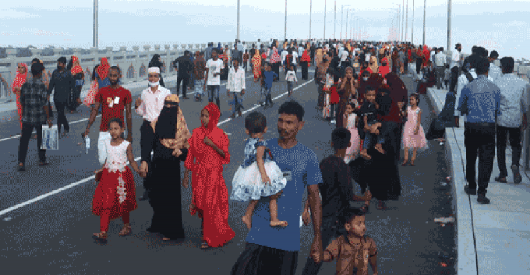 এদিকে, সেতু উদ্বোধনের পর সেতুটি দেখার জন্য মূল সেতুর দুই পাড়সহ সেতুর ঢাল ও আশপাশের এলাকায় মানুষের বাঁধভাঙা স্রোত দেখা গেছে। বিশেষ করে বিকেল ৩টা থেকে সেতুতে ছিল মানুষের ভিড় আর ভিড়। সেই সাথে তাদের মধ্যে অনাবিল আনন্দ। সেতু উদ্বোধনকে ঘিরে সেতুর এ্যাপ্রোচ রোড ও সেতুর ঢালে বিভিন্ন ক্ষুদ্র ব্যবসায়ীরা পসরা সাজিয়ে বসেছিলেন।