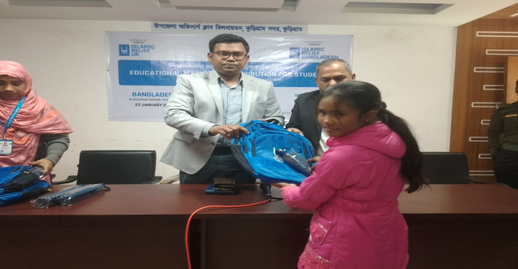 কুড়িগ্রামে শিক্ষার্থীদের মাঝে ইসলামিক রিলিফের ব্যাগ ও ছাতা বিতরণ