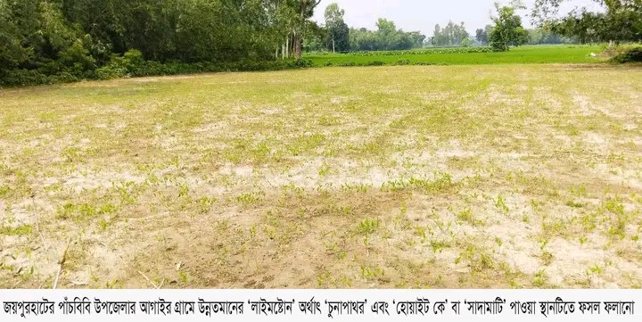 ভারত সীমান্তবর্তী জয়পুরহাটের পাঁচবিবি উপজেলার প্রত্যন্ত এলাকা আগাইর গ্রাম আর এই গ্রামেই ভূ-তাত্বিক জরিপ এর ড্রিলিং কার্যক্রম চালিয়ে সাত বছর আগে মাটির নিচে পাওয়া গেছে উন্নতমানের ‘লাইমষ্টোন’ অর্থাৎ ‘চুনাপাথর’ এবং হোয়াইট কে বা সাদা মাটি’।