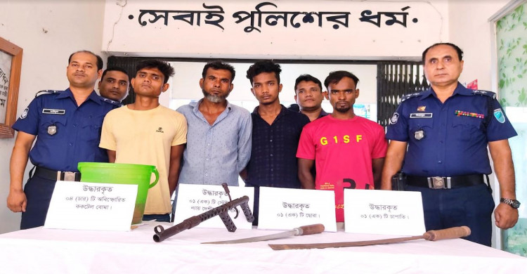 পাংশা থানা পুলিশের অভিযানে অস্ত্র ও বোমা উদ্ধার, আটক ৪