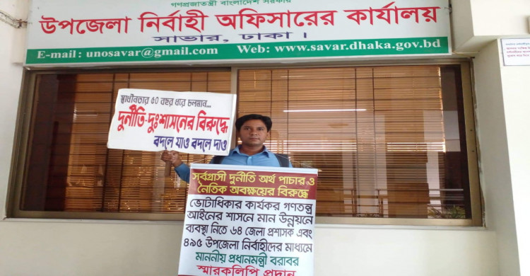 স্বাধীনতার ৫০ বছর ধরে চলমান দুর্নীতি দুঃশাসনের বিরুদ্ধে বদলে যাও বদলে দাও স্লোগান নিয়ে আজ ২ অক্টোবর রবিবার সকাল ১১ টায় সাভার উপজেলার নির্বাহী কর্মকর্তার মাধ্যমে মাননীয় প্রধানমন্ত্রী বরাবর স্বারকলিপি দিয়েছেন হানিফ বাংলাদেশী। তিনি ৬৪ জেলা ও ৪৯৫ উপজেলা প্রদক্ষিণ করে, জেলা প্রশাসক এবং উপজেলা নির্বাহী কর্মকর্তাদের মাধ্যমে মাননীয় প্রধানমন্ত্রী বরাবর স্বারকলিপি দিবেন। প্রতিদিন ৩ উপজেলা প্রদক্ষিণ করে আগামী ২০২৩ সালের জানুয়ারি মাসে পঞ্চগড় জেলার তেঁতুলিয়া উপজেলায় গিয়ে কর্মসূচি সমাপ্ত করবেন।