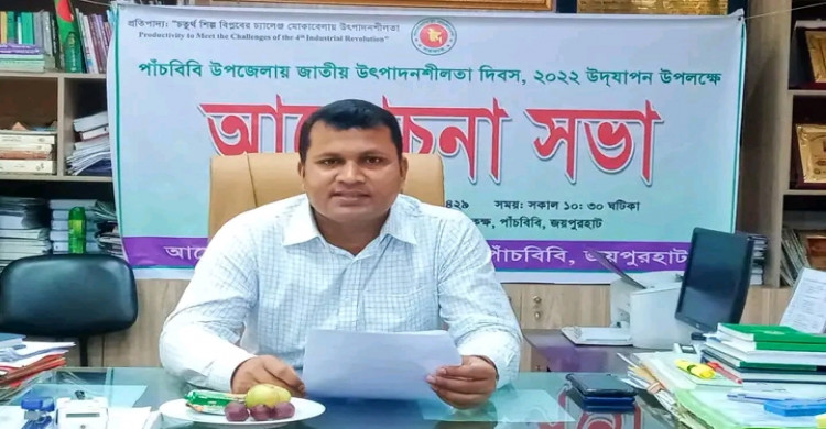 চতুর্থ শিল্প বিপ্লবের চ্যালেঞ্জ মোকাবেলায় জয়পুরহাটের পাঁচবিবিতে জাতীয় উৎপাদনশীলতা দিবস পালিত হয়। রবিবার দুপুরে উপজেলা নির্বাহী কর্মকর্তার অফিসে দিবসটি পালনের লক্ষে আলোচনা সভা অনুষ্ঠিত হয়। সভায় সভাপতিত্ব করেন উপজেলা নির্বাহী কর্মকর্তা মোঃ বরমান হোসেন।