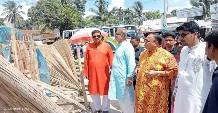 পাইকগাছার জিরোপয়েন্টে বঙ্গবন্ধুর ম্যুরাল নির্মাণ কাজ পরিদর্শনে এমপি বাবু