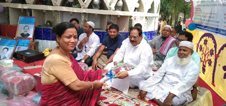 চীবর দান শেষে অনুসারীদের মাঝে বিভিন্ন উপকরণ তুলে দেন অনুষ্ঠানের প্রধান অতিথি।