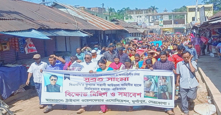 দুর্গাপুরে সাবেক ইউপি চেয়ারম্যান সুব্রত সাংমা হত্যার প্রতিবাদে বিক্ষোভ মিছিল ও সমাবেশ