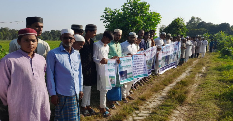 বাড়িয়াঘোনায় হালদার পানিতে প্লাবন থেকে রক্ষায় স্যুইচগেট স্থাপনের দাবিতে মানববন্ধন