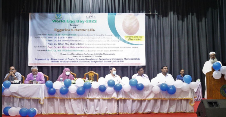 নানা আয়োজনের মধ্য দিয়ে বাংলাদেশ কৃষি বিশ্ববিদ্যালয়ে (বাকৃবি) ‘বিশ্ব ডিম দিবস ২০২২’ পালন করা হয়েছে। 'প্রতিদিন একটি ডিম, পুষ্টিময় সারাদিন' স্লোগানে ডিম দিবসের আয়োজন করে বিশ্ববিদ্যালয়ের পোল্ট্রি বিজ্ঞান বিভাগ।