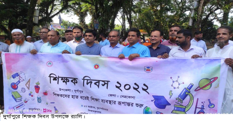 ‘শিক্ষকদের হাত ধরেই শিক্ষা ব্যবস্থার রূপান্তর’ প্রতিপাদ্যে নেত্রকোনার দুর্গাপুরে পালিত হয়েছে শিক্ষক দিবস। বৃহস্পতিবার (২৭ অক্টোবর) নানা আয়োজনে দিবসটি পালিত হয়।