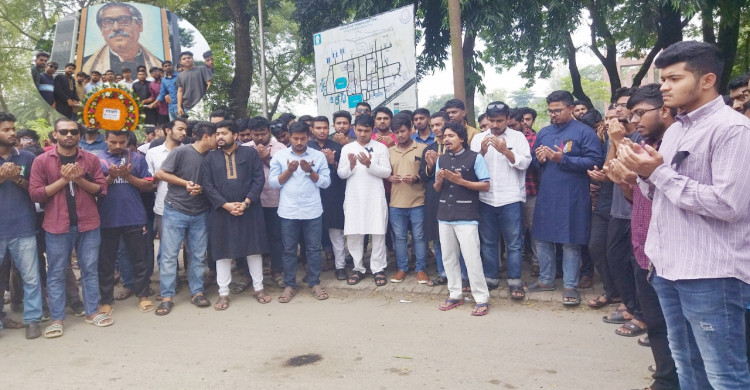 শাখা ছাত্রলীগের সভাপতি ফয়সাল সিদ্দিকী আরাফাতের নেতৃত্বে দুপুর ১২টার দিকে ক্যাম্পাসের দলীয় ট্যান্ট থেকে শোক র্যালি বের করেন নেতাকর্মীরা। র্যালিটি ক্যাম্পাসের বিভিন্ন সড়ক প্রদক্ষিণ করে প্রধান ফটক সংলগ্ন ‘মৃত্যুঞ্জয়ী মুজিব’ ম্যুরালে গিয়ে শেষ হয়। পরে সেখানে শ্রদ্ধাঞ্জলি নিবেদন করেন নেতাকর্মীরা। শ্রদ্ধাঞ্জলি নিবেদন শেষে সেখানে জাতীয় চার নেতার রুহের মাগফিরাত কামনায় দোয়া-মোনাজাত করা হয়।