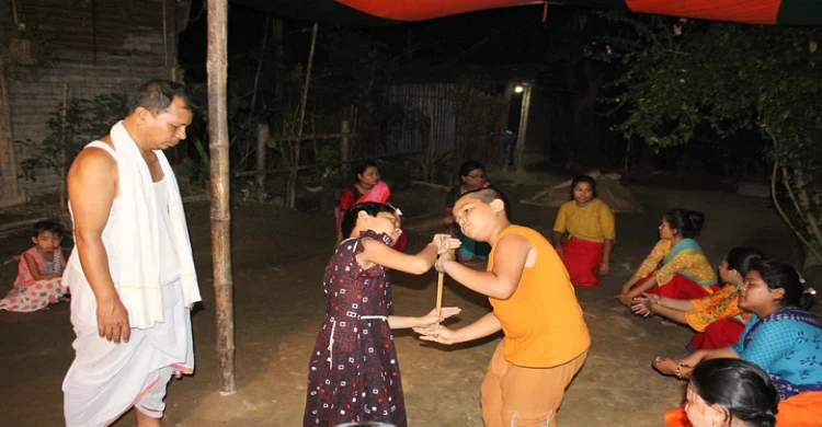রাস উৎসবকে সামনে রেখে প্রতিদিনই নাচের মহড়া দিচ্ছে মণিপুরী ছেলে-মেয়েরা
