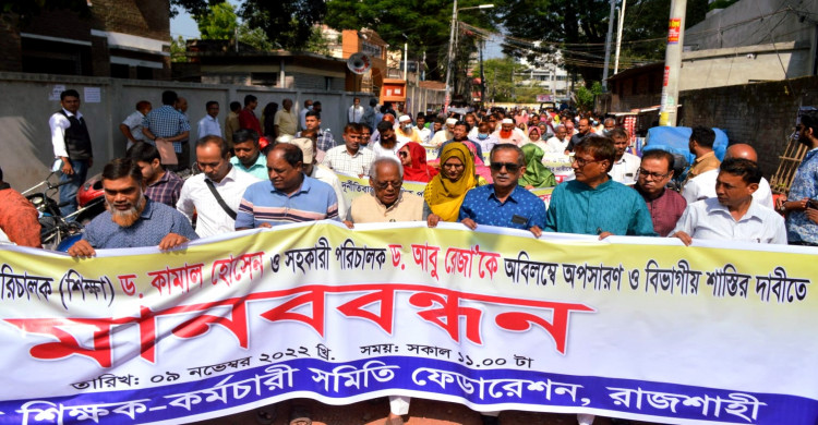 রাজশাহীতে দুই শিক্ষা কর্মকর্তার অপসারণের দাবিতে মানববন্ধন