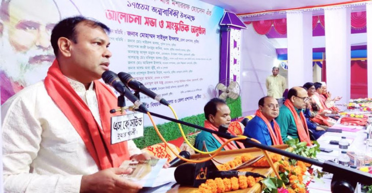 তিনি বলেন, মীর মশাররফ হোসেন বাংলা আর বাঙালির হৃদয়জুড়ে আছেন। তিনি কারবালা প্রান্তরের দুঃসহ বেদনার চিত্র যেভাবে বিষাদসিন্ধু গ্রন্থে কলমের কালিতে লেখনীর মাধ্যমে চিত্রায়ন করেছেন, তা অমর কথাসাহিত্যিকের গৌরব অর্জিত হয়েছে। মীর মশাররফ হোসেন যুগ-যুগান্তরে অমর হয়ে থাকবেন। তার অনবদ্য লেখা বাংলা সাহিত্যকে মহিমান্বিত করেছে।