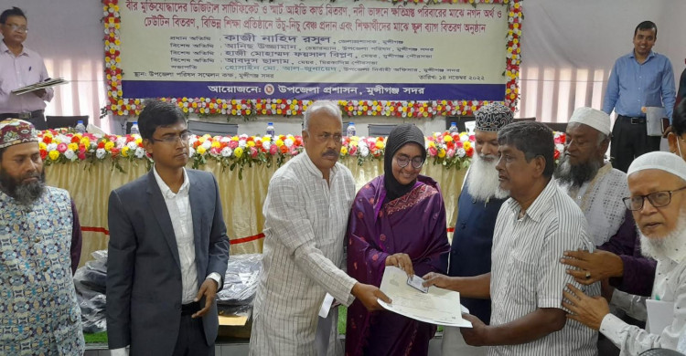 মুন্সীগঞ্জে মুক্তিযোদ্ধাদের মাঝে ডিজিটাল সার্টিফিকেট ও স্মার্ট কার্ড বিতরন কার্যক্রম অনুষ্ঠিত হয়েছে। সদর উপজেলা প্রশাসনের আয়োজনে উপজেলা পরিষদের অডিটোরিয়ামে উক্ত অনুষ্ঠানের আয়োজন করা হয়। সভায় প্রধান অতিথি হিসেবে উপস্থিত ছিলেন জেলা প্রশাসক কাজী নাহিদ রসুল।