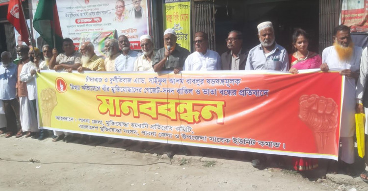 ৭ দফা দাবিতে পাবনায় মুক্তিযোদ্ধাদের মানববন্ধন, কঠোর আন্দোলনের হুঁশিয়ারি