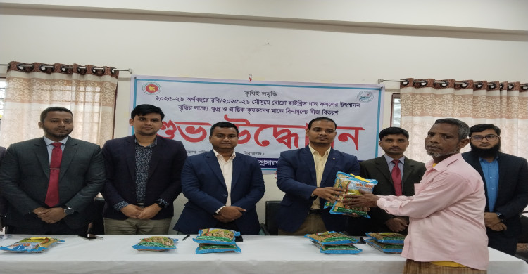 রায়গঞ্জে কৃষকদের মাঝে বিনামূল্যে বোরো ধানের হাইব্রিড বীজ বিতরণ