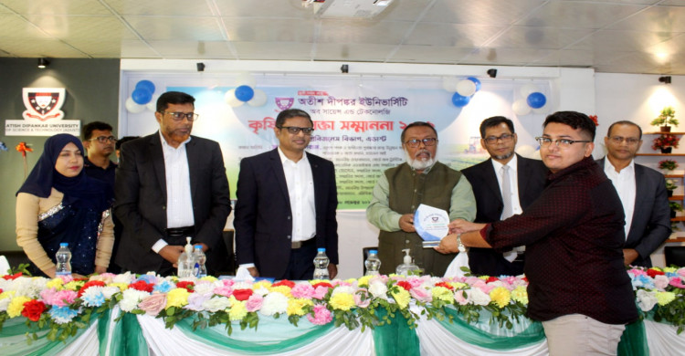 অতীশ দীপঙ্কর ইউনিভার্সিটি অব সায়েন্স টেকনোলজি’র এগ্রিবিজনেস বিভাগের উদ্যোগে ‘কৃষি উদ্যোক্তা সম্মাননা ২০২২’ অনুষ্ঠিত হয়েছে। ১৮ নভেম্বর ২০২২ শুক্রবার, বিশ্ববিদ্যালয়ের অডিটরিয়ামে বর্তমান ও প্রাক্তন ১৩জন তরুণ-উদীয়মান কৃষি উদ্যোক্তাদের এই সম্মাননা প্রদান করা হয়। অতীশ দীপঙ্কর ইউনিভার্সিটি-এর উপাচার্য প্রফেসর ড. মো. জাহাঙ্গীর আলম এর সভাপতিত্বে অনুষ্ঠানে প্রধান অতিথি হিসেবে উপস্থিত ছিলেন একুশে পদক ও স্বাধীনতা পুরস্কার প্রাপ্ত উন্নয়ন সাংবাদিক, চ্যানেল আই এর পরিচালক ও বার্তা প্রধান জনাব শাইখ সিরাজ।