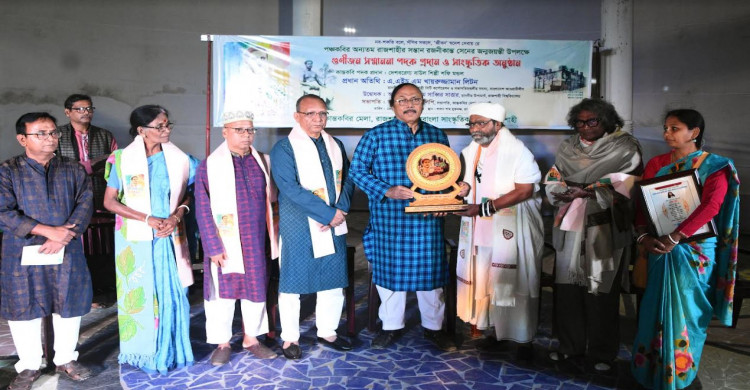 রাজশাহীতে দেশবরেণ্য বাউল শিল্পী শফি মণ্ডলকে কান্তকবি পদক প্রদান