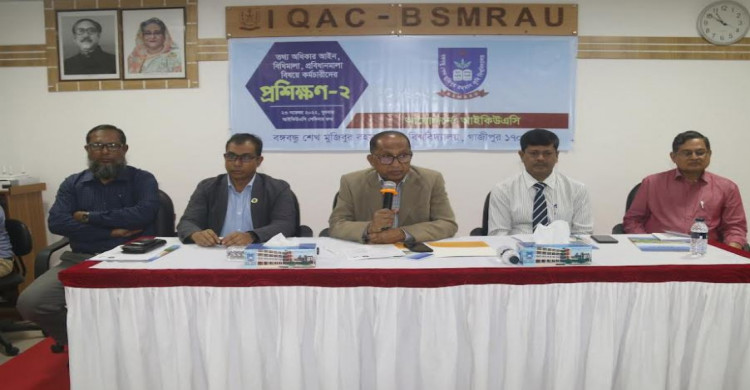 বঙ্গবন্ধু শেখ মুজিবুর রহমান কৃষি বিশ্ববিদ্যালয়ে বুধবার তথ্য অধিকার আইন, বিধিমালা ও প্রবিধানমালা’ বিষয়ক এক প্রশিক্ষণ অনুষ্ঠিত হয়েছে। বিশ্ববিদ্যালয়ের আইকিউএসি’র সেমিনার কক্ষে এই প্রশিক্ষণ অনুষ্ঠিত হয়। প্রশিক্ষণে বিশ্ববিদ্যালয়ের উপাচার্য অধ্যাপক ড. মোঃ গিয়াসউদ্দীন মিয়া প্রধান অতিথি এবং ট্রেজারার অধ্যাপক তোফায়েল আহমেদ এবং এপিএ’র টিম লিডার ও পরিচালক (পরিকল্পনা ও উন্নয়ন) প্রফেসর ড. এম. ময়নুল বিশেষ অতিথি হিসেবে উপস্থিত ছিলেন। পরিচালক (আইকিউএসি) প্রফেসর ড. মোঃ আবিয়ার রহমানের সভাপতিত্বে অনুষ্ঠানে স্বাগত বক্তব্য প্রদান করেন তথ্য অধিকার কর্মপরিকল্পনা বাস্তাবায়ন কমিটির আহবায়ক ও পরিচালক (গবেষণা) প্রফেসর ড. এ. কে. এম. আমিনুল ইসলাম। উপাচার্য প্রশিক্ষণের উদ্বোধনীকালে বলেন, আধুনিক প্রযুক্তিনির্ভর বিশ্বে তথ্য অধিকার আইন একটি গুরুত্বপূর্ণ বিষয়। তথ্য অধিকার বিষয়ে সচেতনতা বৃদ্ধি এবং তথ্য প্রাপ্তি সহজতর করার জন্য এ প্রশিক্ষণ দক্ষতা বৃদ্ধিতে সহায়ক হবে।