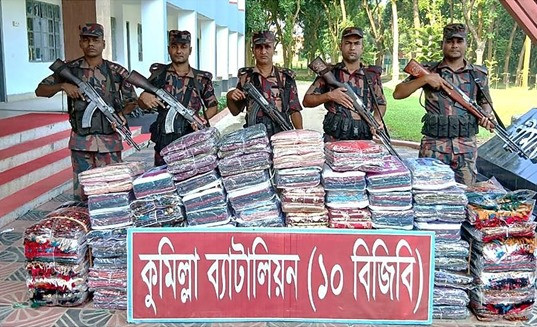 কুমিল্লায় কোটি টাকার ভারতীয় অবৈধ শাড়ি-মোবাইল ডিসপ্লে জব্দ
