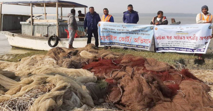 গলাচিপায় মৎস কর্মকর্তার অভিযানে অবৈধ জাল জব্দ