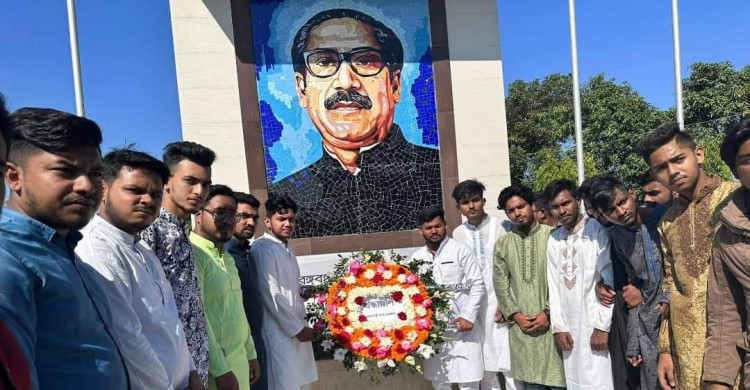 বঙ্গবন্ধুর প্রতিকৃতিতে কোনাবাড়ী থানা ছাত্রলীগের শ্রদ্ধা