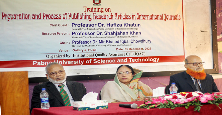 পাবনা বিজ্ঞান ও প্রযুক্তি বিশ্ববিদ্যালয়ে সোমবার (০৫ ডিসেম্বর) শিক্ষকদের জন্য দিনব্যাপী ‘প্রিপারেশন অ্যান্ড প্রসেস অব পাবলিশিং রিসার্চ আর্টিকেলস ইন ইন্টারন্যাশনাল জার্নাল’ শিরোনামে এক কর্মশালার আয়োজন করা হয়। পাবিপ্রবি’র উপাচার্য অধ্যাপক ড. হাফিজা খাতুন কর্র্মশালাটি সকাল পৌনে ১০টায় উদ্বোধন করেন।