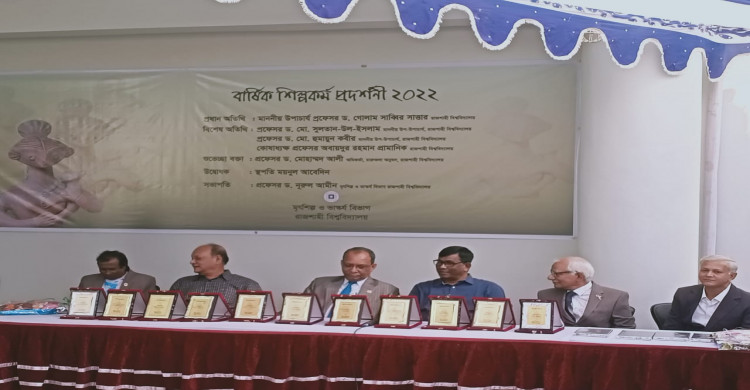 রাজশাহী বিশ্ববিদ্যালয়ে(রাবি) তিন দিনব্যাপী শিল্পকর্ম প্রদর্শনী শুরু হয়েছে। আজ মঙ্গলবার সকাল ১১ টায় চারুকলা অনুষদে মৃৎশিল্প ও ভাস্কর্য বিভাগ আয়োজিত বার্ষিক শিল্পকর্ম প্রদর্শনী শুরু হয়। প্রদর্শনীর ভাষ্কর্যগুলো কাঠ, পাথর এবং সিমেন্টের তৈরি। প্রদর্শনীতে ৬১ জন শিক্ষার্থীর ৭১টি ভাস্কর্য প্রদর্শিত হবে। এর মধ্য থেকে সেরা ১০ জন শিক্ষার্থীকে পুরষ্কৃত করবে বিভাগ।