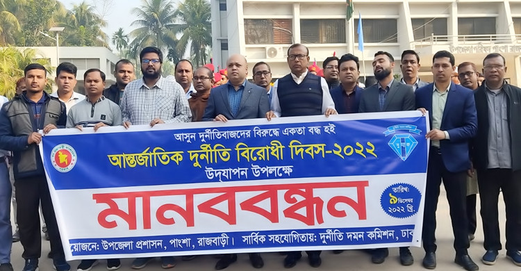 আপনার অধিকার, আপনার কর্তব্যঃ দুর্নীতিকে না বলুন এই স্লোগানকে সামনে রেখে সারা দেশের ন্যায় রাজবাড়ীর পাংশায় বিভিন্ন কর্মসূচির মধ্যদিয়ে আন্তর্জাতিক দূনীতি বিরোধী দিবস-২০২২ পালিত হয়েছে।