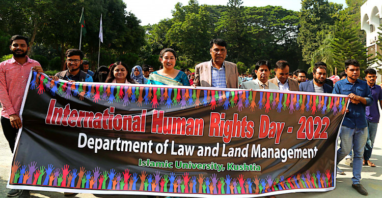 ইসলামী বিশ্ববিদ্যালয়ে (ইবি) আন্তর্জাতিক মানবাধিকার দিবস-২০২২ পালিত হয়েছে। দিবসটি উপলক্ষে শনিবার (১০ ডিসেম্বর) র্যালি অনুষ্ঠিত হয়। বিশ্ববিদ্যালয়ের আইন ও ভূমি ব্যবস্থাপনা বিভাগ এ র্যালির আয়োজন করে।