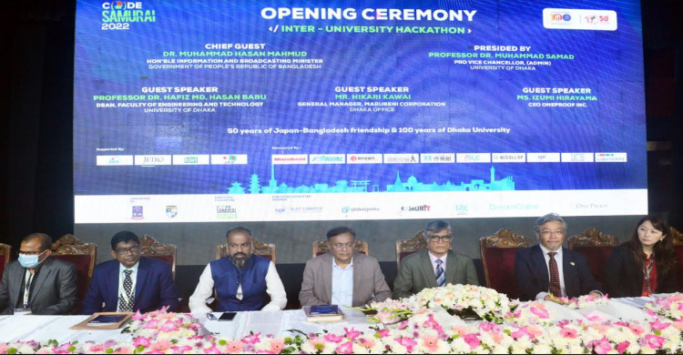 ঢাকা বিশ্ববিদ্যালয় কম্পিউটার বিজ্ঞান ও প্রকৌশল (সিএসই) বিভাগ এবং বাংলাদেশ জাপান ইনফরমেশন টেকনোলজি (বিজেআইটি)-এর যৌথ উদ্যোগে দু'দিনব্যাপী 'দ্বিতীয় কোড সামুরাই আন্তঃবিশ্ববিদ্যালয় হ্যাকাথন প্রতিযোগিতা ২০২২' আজ ২০ ডিসেম্বর ২০২২ মঙ্গলবার শুরু হয়েছে।