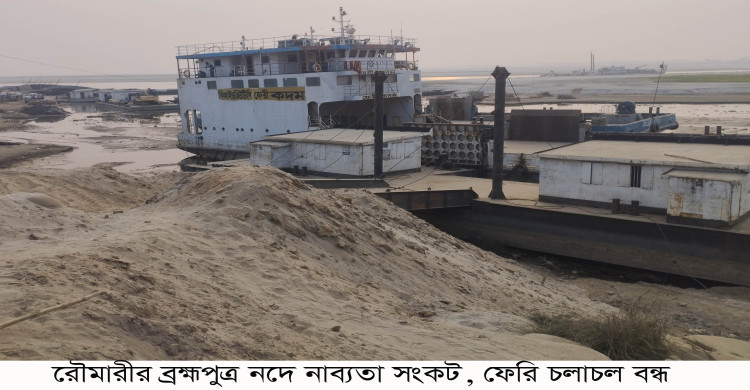 ব্রহ্মপুত্র নদে নাব্যতা সংকটে ফেরি চলাচল বন্ধ