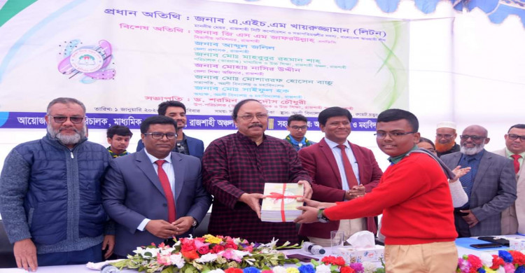 রাজশাহীতে উৎসবমুখর পরিবেশে পাঠ্যপুস্তক উৎসব দিবসে শিক্ষার্থীদের মাঝে বিনামূল্যে নতুন বই বিতরণ করা হয়েছে। রবিবার (১জানুয়ারি) বেলা সাড়ে ১১টায় অগ্রণী বিদ্যালয় ও মহাবিদ্যালয়ে বেলুন-ফেস্টুন ও পায়রা উড়িয়ে এবং শিক্ষার্থীদের হাতে নতুন বই তুলে দিয়ে পাঠ্যপুস্তক উৎসবের উদ্বোধন করেন অনুষ্ঠানের প্রধান অতিথি বাংলাদেশ আওয়ামী লীগের সভাপতিমণ্ডলীর সদস্য ও রাজশাহী সিটি কর্পোরেশনের মেয়র এ.এইচ.এম খায়রুজ্জামান লিটন। মাধ্যমিক ও উচ্চ শিক্ষা রাজশাহী অঞ্চলের উপ-পরিচালক এই পাঠ্যপুস্তক উৎসবের আয়োজন করে।