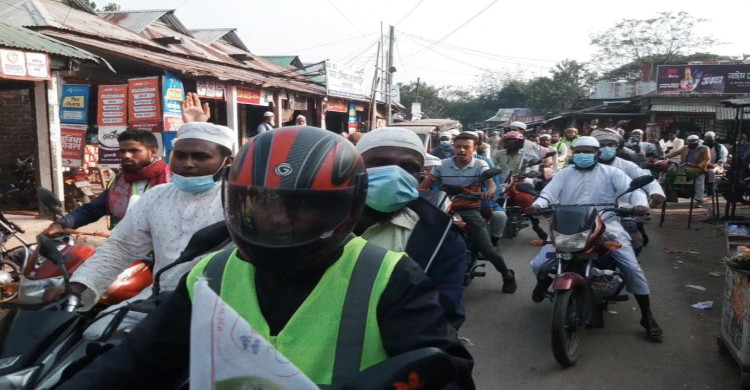 নেত্রকোণা-১ খেলাফত মজলিশের এমপি প্রার্থী গোলাম রব্বানী বিশাল মোটর সাইকেল নিয়ে নির্বাচনী শোডাউন