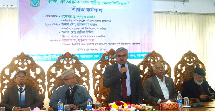 বাংলাদেশ কৃষি বিশ্ববিদ্যালয়ে (বাকৃবি) অনুষ্ঠিত ‘ব্যক্তি, প্রাতিষ্ঠানিক এবং রাষ্ট্রীয় ক্ষেত্রে নৈতিকতা’ শীর্ষক এক কর্মশালায় প্রধান অতিথির বক্তব্যে উপাচার্য অধ্যাপক ড. লুৎফুল হাসান এসব কথা বলেন।