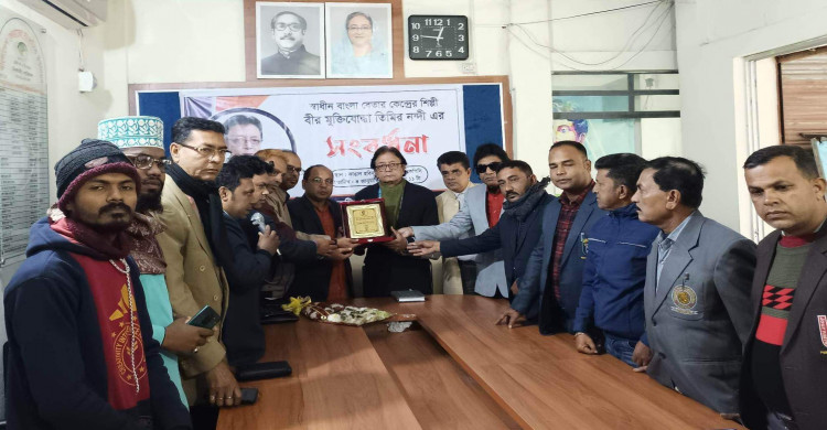স্বাধীন বাংলা বেতার কেন্দ্রের শিল্পী বীর মুক্তিযোদ্ধা তিমির নন্দীকে কুষ্টিয়া প্রেসক্লাব-কেপিসির পক্ষ থেকে বর্ণাঢ্য আয়োজনের মধ্য দিয়ে এক বিশাল সংবর্ধনা প্রদান করা হয়। বুধবার বেলা ১১টায় কুষ্টিয়া প্রেসক্লাব-কেপিসির কাঙ্গাল হরিনাথ মিলনায়তনে এ সংবর্ধনা অনুষ্ঠিত হয়। স্বাধীন বাংলা বেতার কেন্দ্রের শিল্পী, কুষ্টিয়ার কৃতি সন্তান, বীর মুক্তিযোদ্ধা তিমির নন্দী সংবর্ধনা অনুষ্ঠানে কাঙাল হরিনাথ পদক প্রদান করা হয়। এ সময় তিনি বলেন, স্বাধীন বাংলা বেতার কেন্দ্রের শিল্পী হিসেবে কুষ্টিয়া প্রেসক্লাব-কেপিসির পক্ষ থেকে সংবর্ধনা ও কাঙ্গাল হরিনাথ পদক পেয়ে আমি গর্বিত।স্বাধীন বাংলার বেতার কেন্দ্রের একজন শিল্পী হিসেবে পরিচয় লাভ করা,এটি আমার জীবনে সবচেয়ে বড় পাওয়া। আমরা বঙ্গবন্ধুকন্যা শেখ হাসিনার প্রতি চিরকৃতজ্ঞ। তিনি আমাদের মুক্তিযোদ্ধার মর্যাদা দিয়েছেন। রাষ্ট্রীয়ভাবে ভাতা দিচ্ছেন। তিনি বলেন, বঙ্গবন্ধুর আদর্শ নিয়ে আমরা জীবনের ঝুঁকি নিয়ে স্বাধীনতার গান, মুক্তির গান গেয়েছি। নোঙর তোলো তোলো গান দিয়ে শুরু আর বিজয় নিশান গানের মধ্য দিয়ে স্বাধীন বাংলা বেতার কেন্দ্রের যাত্রার পরিসমাপ্তি হয়। মায়ের কথায় আমি স্বাধীন বাংলা বেতার কেন্দ্রে যোগ দিয়েছিলাম। শিল্পী তিমির নন্দী বলেন, পচাত্তরের ১৫ আগস্টে বঙ্গবন্ধুকে হত্যার মধ্য দিয়ে এদেশে স্বাধীনতা বিরোধীদের উত্থান হয়। জাতি মুক্তিযুদ্ধের পক্ষ ও বিপক্ষে বিভাজিত হয়। আমি রাশিয়া থেকে ১৯৮৩ সালে দেশে ফিরি। সে সময় এদেশে বঙ্গবন্ধু ও মুক্তিযুদ্ধের চেতনা নিষিদ্ধ ছিলো। আমি সে সময় চারুকলায় বঙ্গবন্ধুকে নিয় গান গেয়েছিলাম। অনেকে আমাকে হুমকি দিয়েছিলো। আমি বলেছিলাম, বঙ্গবন্ধুর প্রশ্নে কোন আপোস নেই। সর্বশেষ তিনি বলেন, সাংস্কৃতিক রাজধানী কুষ্টিয়ায় রাজু ভাই নেই, মান্না ভাই নেই, জব্বার ভাই নেই, কল্যান দা নেই। এখন শুধু আমি বেঁচে আছি। বর্তমান সরকারের কাছে আমার একটিই দাবী, কুষ্টিয়ায় বেতার কেন্দ্র স্থাপনের মাধ্যমে এই জেলার শিল্প, সাহিত্য ও সংস্কৃতিকে রক্ষা করুন। সাংস্কৃতিক রাজধানী কুষ্টিয়ায় একটি বেতার কেন্দ্র হওয়া সময়ের দাবী,কুষ্টিয়া জেলায় বেতার কেন্দ্র হওয়া উচিৎ বলে আমি মনে করি।সর্বশেষ তিনি স্বাধীন বাংলা বেতার কেন্দ্রের বিজয় নিশান গান,রক্ত দিয়ে নাম লিখেছি বাংলাদেশ গানের দুই-কলি গেয়ে সাংবাদিকদের মনোমুগ্ধকরে বক্তব্য শেষ করেন।অনুষ্ঠানে কুষ্টিয়া প্রেসক্লাব-কেপিসি ও সাংবাদিক ইউনিয়ন কুষ্টিয়ার সভাপতি বাংলাদেশ বেতার কুষ্টিয়া জেলা প্রতিনিধি রাশেদুল ইসলাম বিপ্লব বলেন স্বাধীন বাংলা বেতার কেন্দ্রের শিল্পী বীর মুক্তিযোদ্ধা তিমির নন্দী আমাদের মাঝে এসে সংবর্ধনা গ্রহণ 