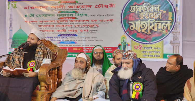 মুন্সিগঞ্জ পৌর এলাকার ৭ নং ওয়ার্ড চর কিশোর গঞ্জ পূর্বপাড়া যুব সমাজের উদ্যোগে তাফসীরুল কুরআন ও ওয়াজ মাহফিল অনুষ্ঠিত হয়েছে। গতকাল বৃহস্পতিবার সন্ধায় উক্ত মাহফিলে বিভিন্ন এলাকার মুসল্লী সহ বিভিন্ন শ্রেণী পেশার লোকজনের উপস্থিত ছিল।