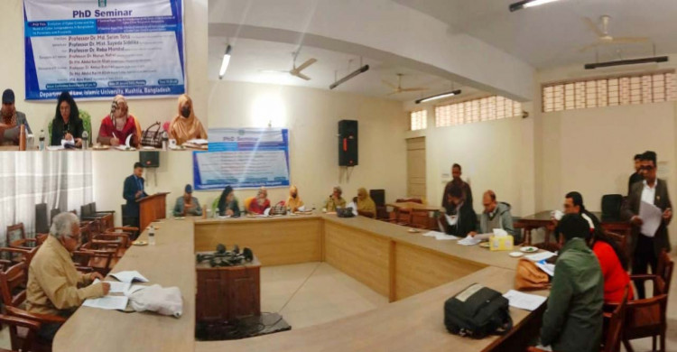 ইসলামী বিশ্ববিদ্যালয়ে (ইবি) ‘অ্যাভোলিউশন অব সাইবার ক্রাইম অ্যান্ড দ্যা নিড অব সাইবার জুরিসপ্রুডেন্স ইন বাংলাদেশ: ইটস প্যানারোমা অ্যান্ড প্রসপেক্টস’ বিষয়ে পিএইচডি সেমিনার অনুষ্ঠিত হয়েছে।
