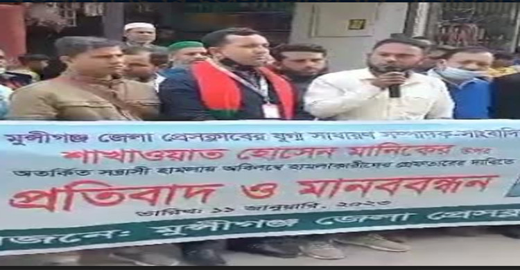 মুন্সিগঞ্জে সাংবাদিক মারধরের ঘটনায় মানববন্ধন
