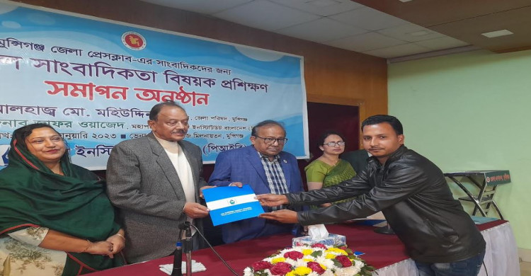 সমাপন অনুষ্ঠানে সাংবাদিকদের উদ্দেশ্যে দিক নির্দেশনামূলক বক্তব্য রাখেন পিআইবি মহাপরিচালক জাফর ওয়াজেদ। পরে সকল সাংবাদিকদের মাঝে সনদ বিতরণ করেন অতিথিরা।