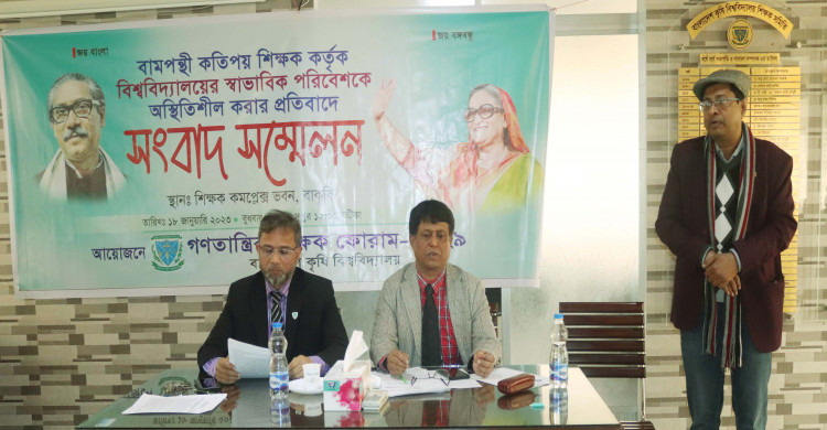 সরকার দলীয় সংগঠনের নাম ব্যবহার করে কতিপয় বামপন্থী শিক্ষক বিশ্ববিদ্যালয়ের স্বাভাবিক শিক্ষা ও গবেষণার পরিবেশকে অস্থিতিশীল করার চেষ্টা করছেন। যারা গণতান্ত্রিক শিক্ষক ফোরামের নাম ব্যবহার করে আসছে এবং বিশ্ববিদ্যালয়ের ভাবমূর্তি নষ্ট করছে।