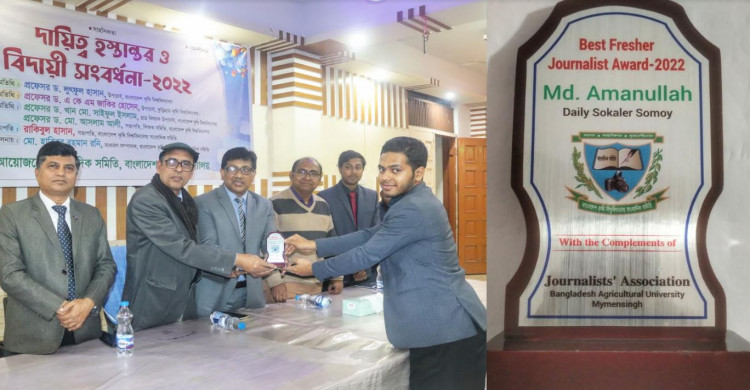 শনিবার বাকৃবি সাংবাদিক সমিতি ২০২২ সালের কার্যনির্বাহী কমিটির দায়িত্ব হস্তান্তর ও বিদায়ী সংবর্ধনা অনুষ্ঠানের আয়োজন করে। অনুষ্ঠানে বর্ষসেরা নবীন সাংবাদিক হিসেবে মো আমান উল্লাহ এর হাতে সম্মাননা স্মারক ও সনদপত্র তুলে দেন কুড়িগ্রাম কৃষি বিশ্ববিদ্যালয়ের উপাচার্য অধ্যাপক ড. এ কে এম জাকির হোসেন ।
