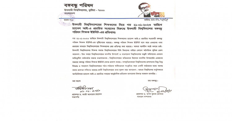 বিজ্ঞপ্তিতে বলা হয়েছে, গত ২১ জানুয়ারি ইসলামী বিশ্ববিদ্যালয়ের শিক্ষকদের চ্যানেল আই-এ প্রচারিত সংবাদটি বঙ্গবন্ধু পরিষদ শিক্ষক ইউনিট-এর দৃষ্টিগোচর হয়েছে। বঙ্গবন্ধু পরিষদ শিক্ষক ইউনিট মনে করে এধরনের খবর প্রচারের মাধ্যমে বিশ্ববিদ্যালয়ের শিক্ষকদের হেয় প্রতিপন্ন করা হয়েছে। আমরা দ্ব্যর্থহীন কণ্ঠে বলতে চাই-ইসলামী বিশ্ববিদ্যালয় শিক্ষক সমাজ বিশ্ববিদ্যালয়ের বিধি বিধানের বাইরে কোনো অনৈতিক সুবিধা ভোগ করেননা। উক্ত খবরে বিশ্ববিদ্যালয়ের উপাচার্য ও বাংলাদেশ বিশ্ববিদ্যালয় মঞ্জুরী কমিশনের একজন দায়িত্বশীল কর্মকর্তার বক্তব্য হতাশাজনক। বিশ্ববিদ্যালয়ের অভিভাবক হিসেবে উপাচার্যের এধরনের বক্তব্যে বঙ্গবন্ধু পরিষদ শিক্ষক ইউনিট ক্ষোভ প্রকাশ করছে।