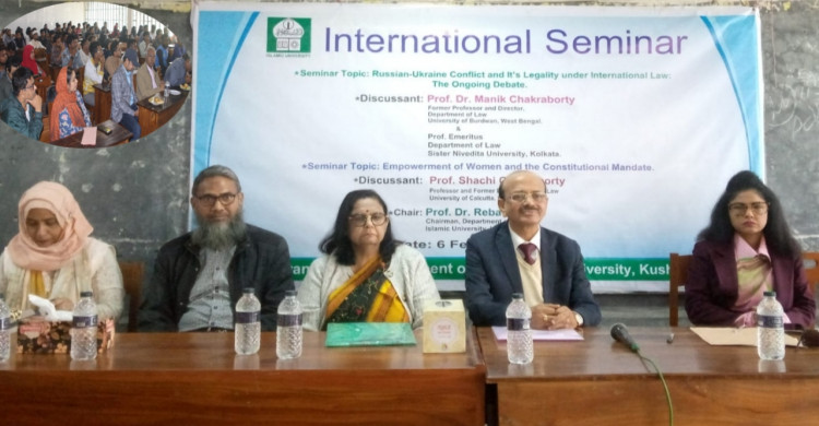 ইসলামী বিশ্ববিদ্যালয়ে (ইবি) দিনব্যাপী আন্তর্জাতিক সেমিনার অনুষ্ঠিত হয়েছে। আইন বিভাগের উদ্যোগে সোমবার (৬ ফেব্রুয়ারি) বেলা ১২টায় বিশ্ববিদ্যালয়ের মীর মশাররফ হোসেন একাডেমিক ভবনে সেমিনারটির আয়োজন করা হয়।